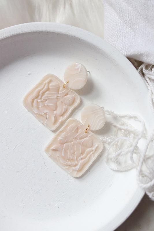 Flutter Hoop Polymer Clay Earrings in Pearl