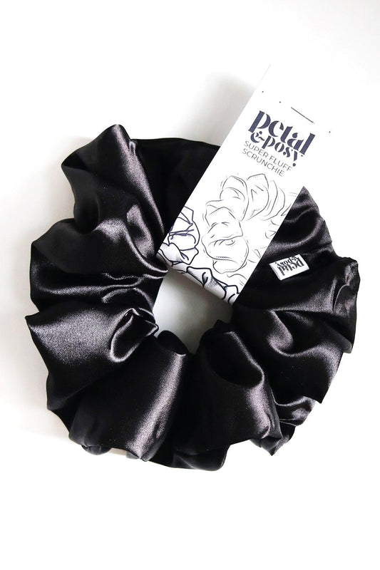 Petal & Posy Super Fluff and Slim Fluff Scrunchies are made with the lightestest weight, softest silk satin and other high quality fabrics then triple knotted braided elastic that holds all hair from fine to thick!