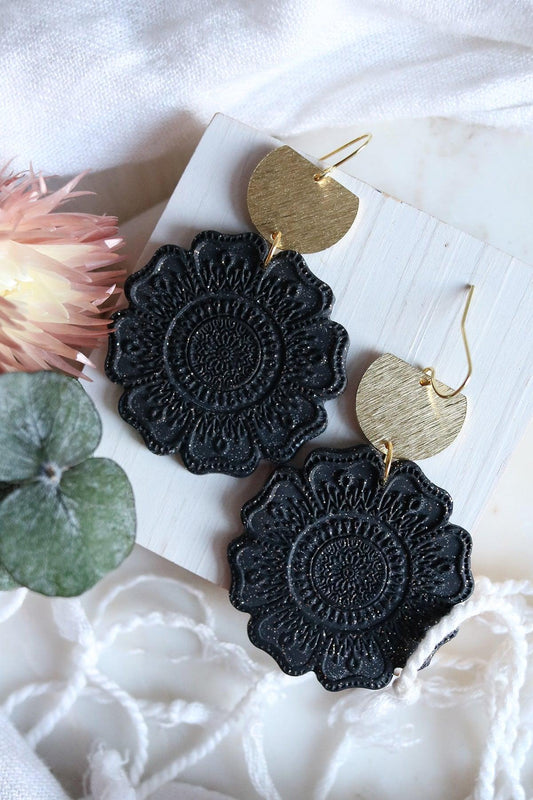 Gerbera Earrings in Onyx