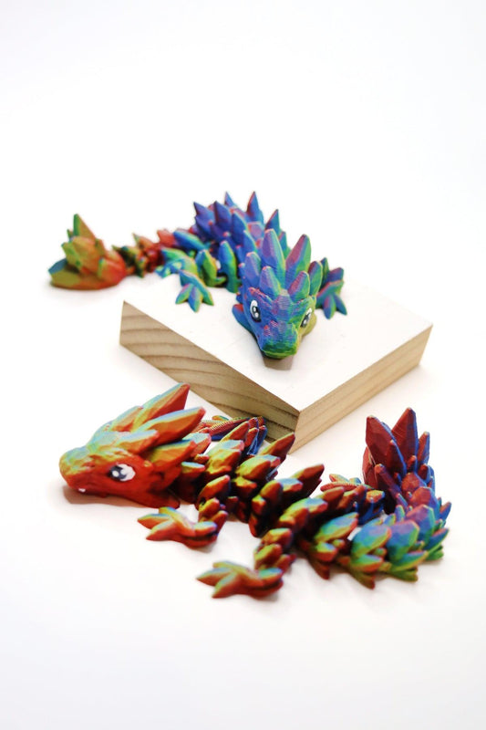 3D Printed Gemstone Dragon Fidget Pet in Primary Rainbow