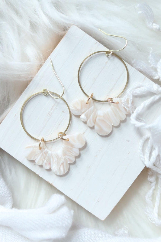 Flutter Hoop Polymer Clay Earrings in Pearl