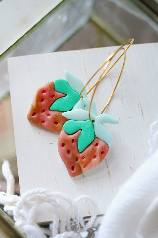 Strawberry Fields Forever Polymer Clay Hoop Earrings